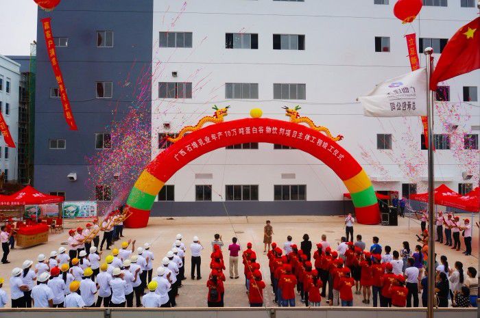 97日,广西石埠乳业年产10万吨卵白谷物饮料项目举行主体工程竣工仪式。南宁市良庆区党委常委、统战部部长黄均梅,副区长卿勇和经开区副主任张有信等南宁市良庆区党委、政府领导应邀出席仪式。广西石埠乳业有限责任公司副总经理黄联祥及各相关施工、监理等单代表和嘉宾等近200人加入竣工仪式。