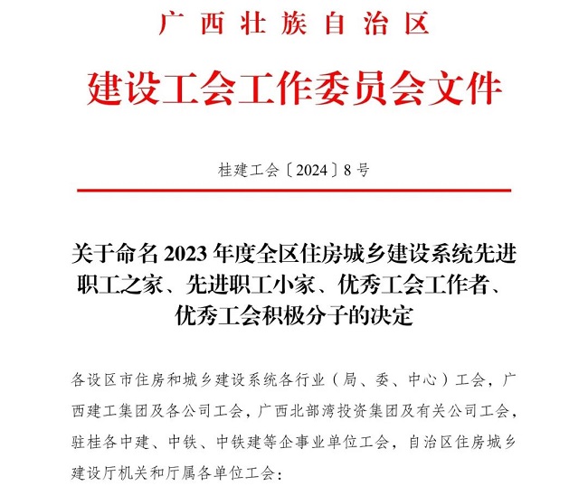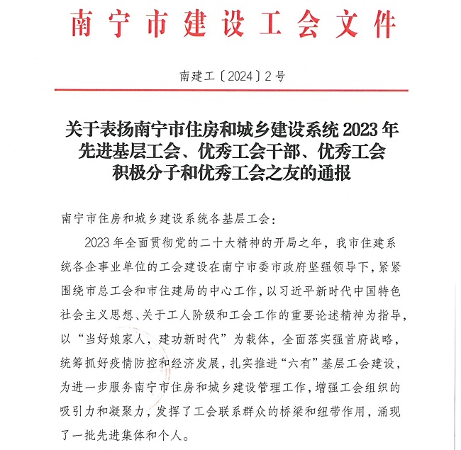 近日,南宁市建设工会宣布《关于表扬...